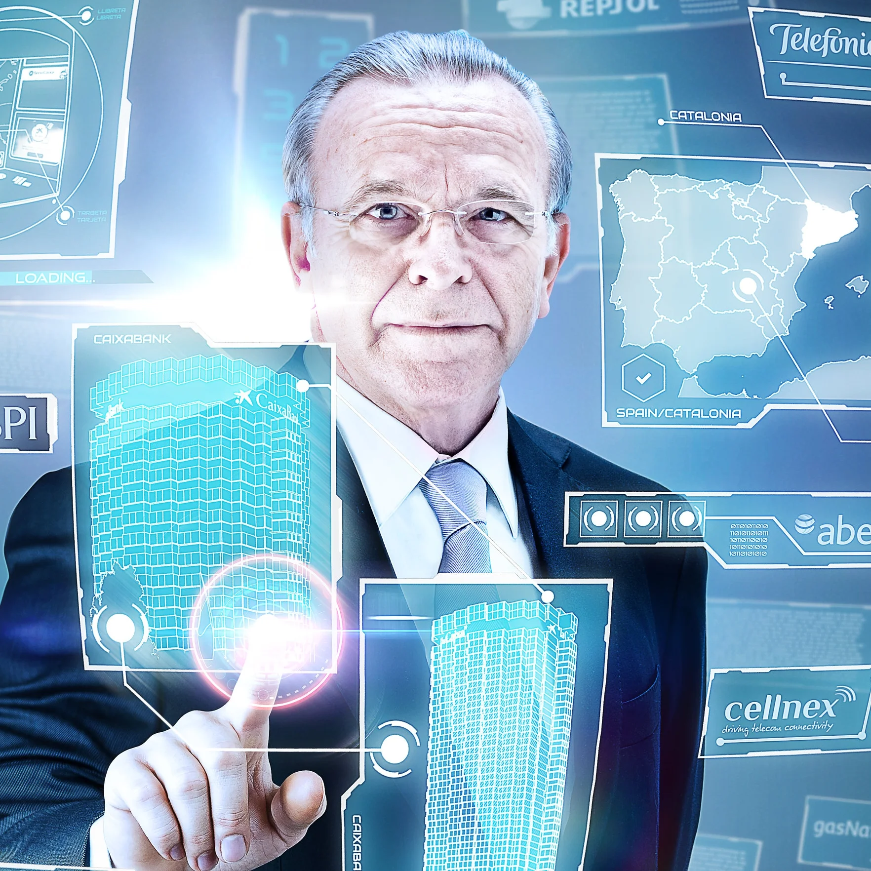 a creative portrait for Euromoney magazine, taking a 'minority report' concept to illustrate a range of topics within the image.